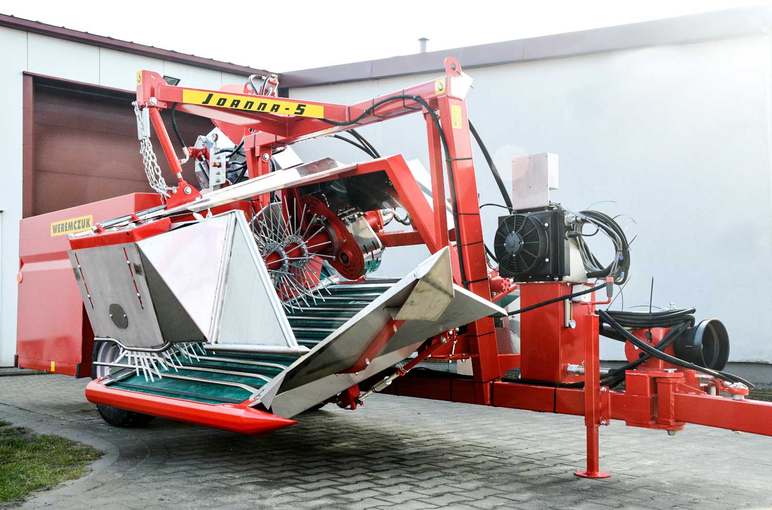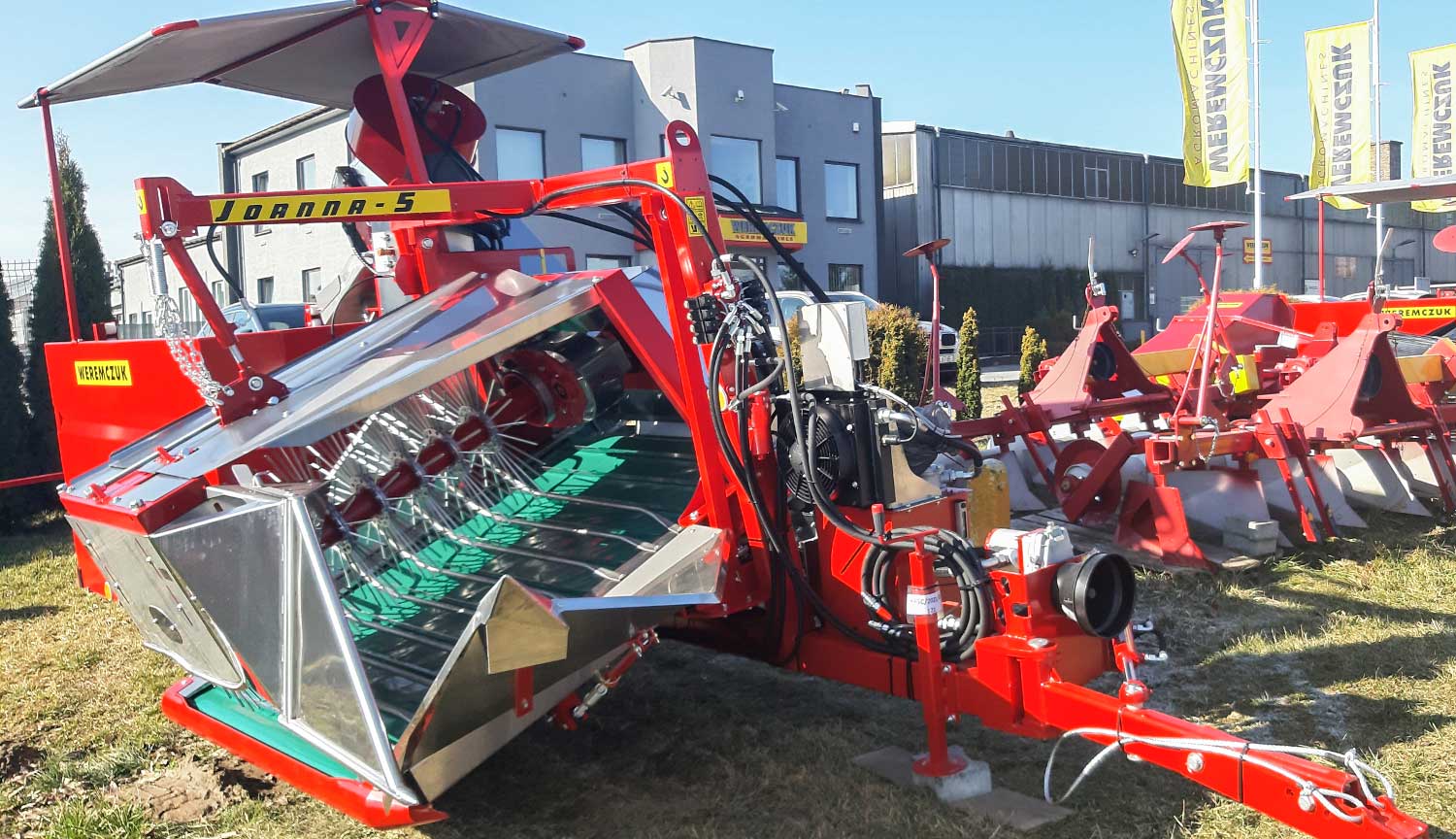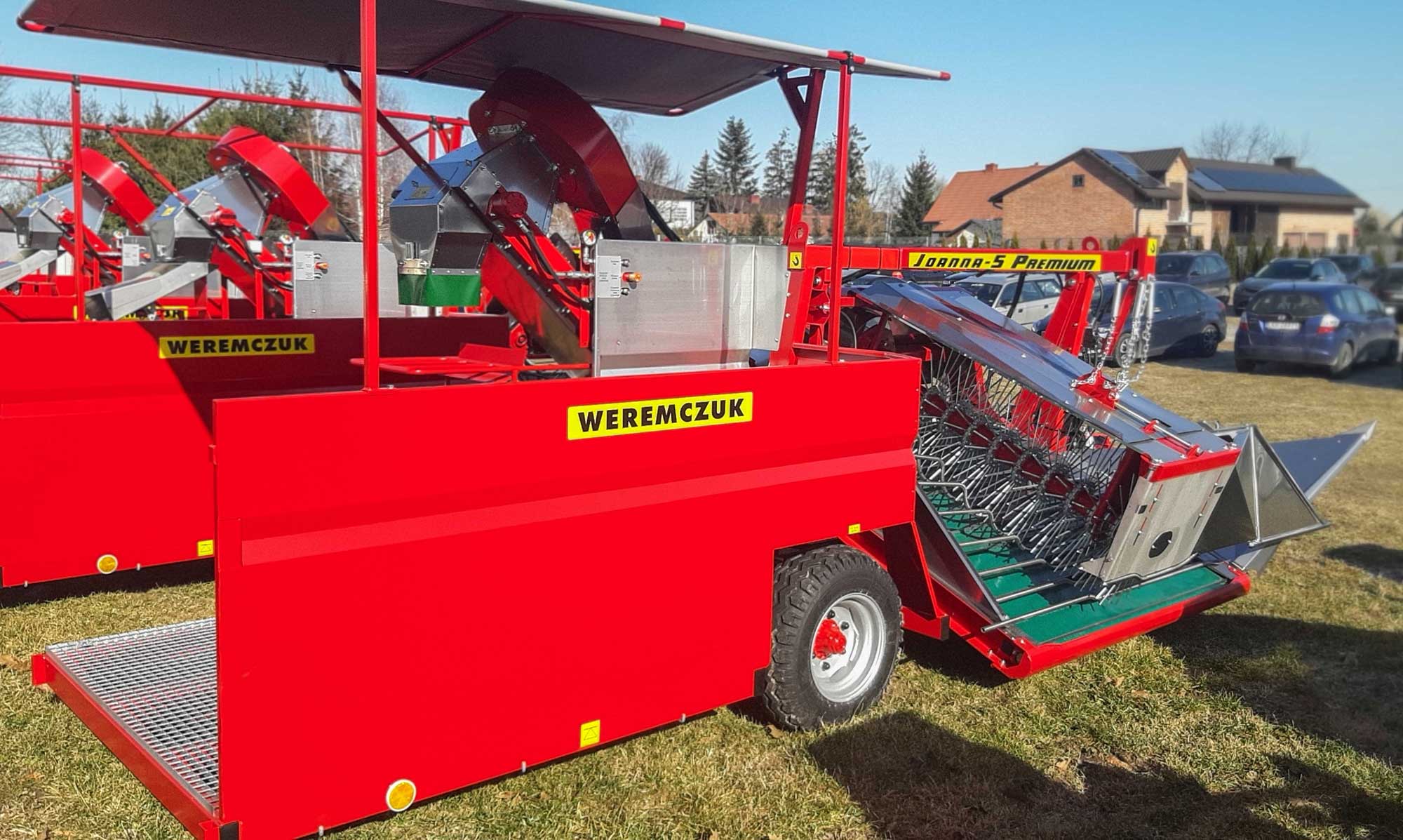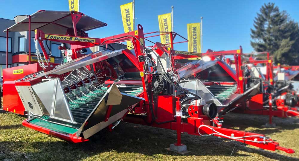 Joanna premiumFélsoros bogyós gyümölcs betakarító gép, vontatott kivitel. Ribizli, berkenye, egres, mézbogyó, csipkebogyó és egyéb bogyós gyümölcsök betakarításához 500kg-os tartályládába vagy kisrekeszbe. Műszaki adatok, felszereltség: