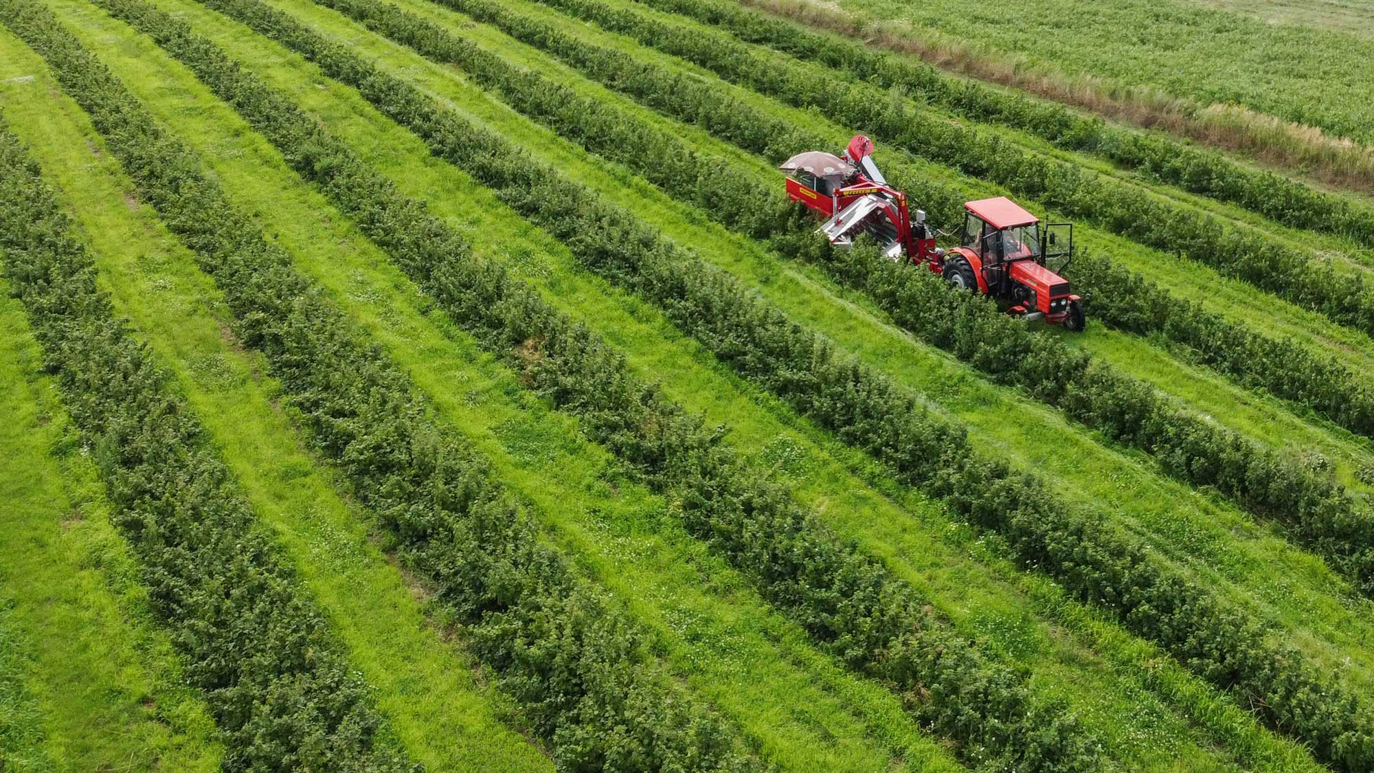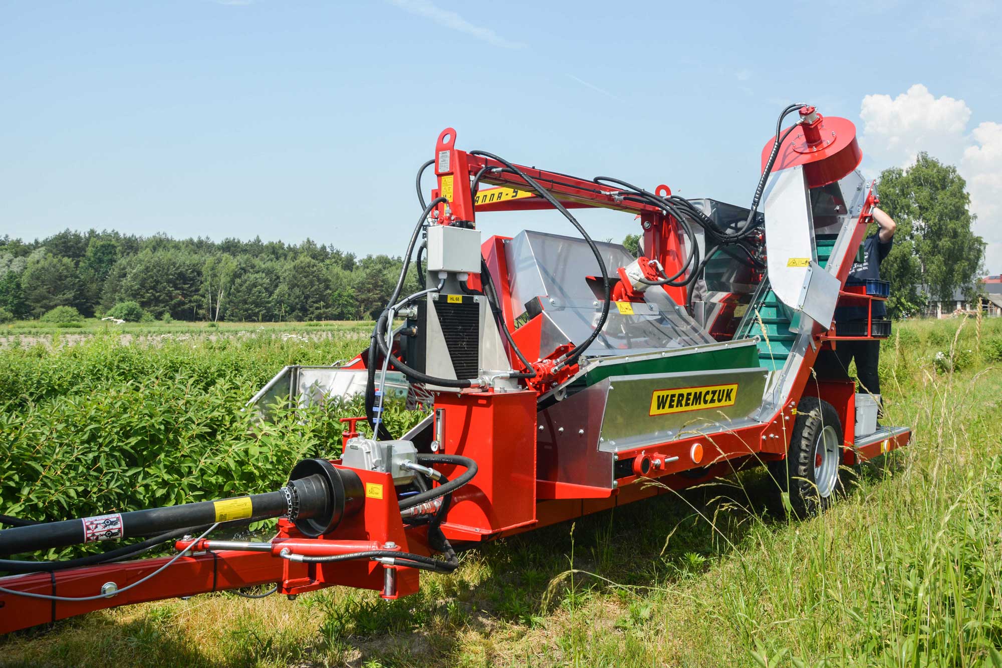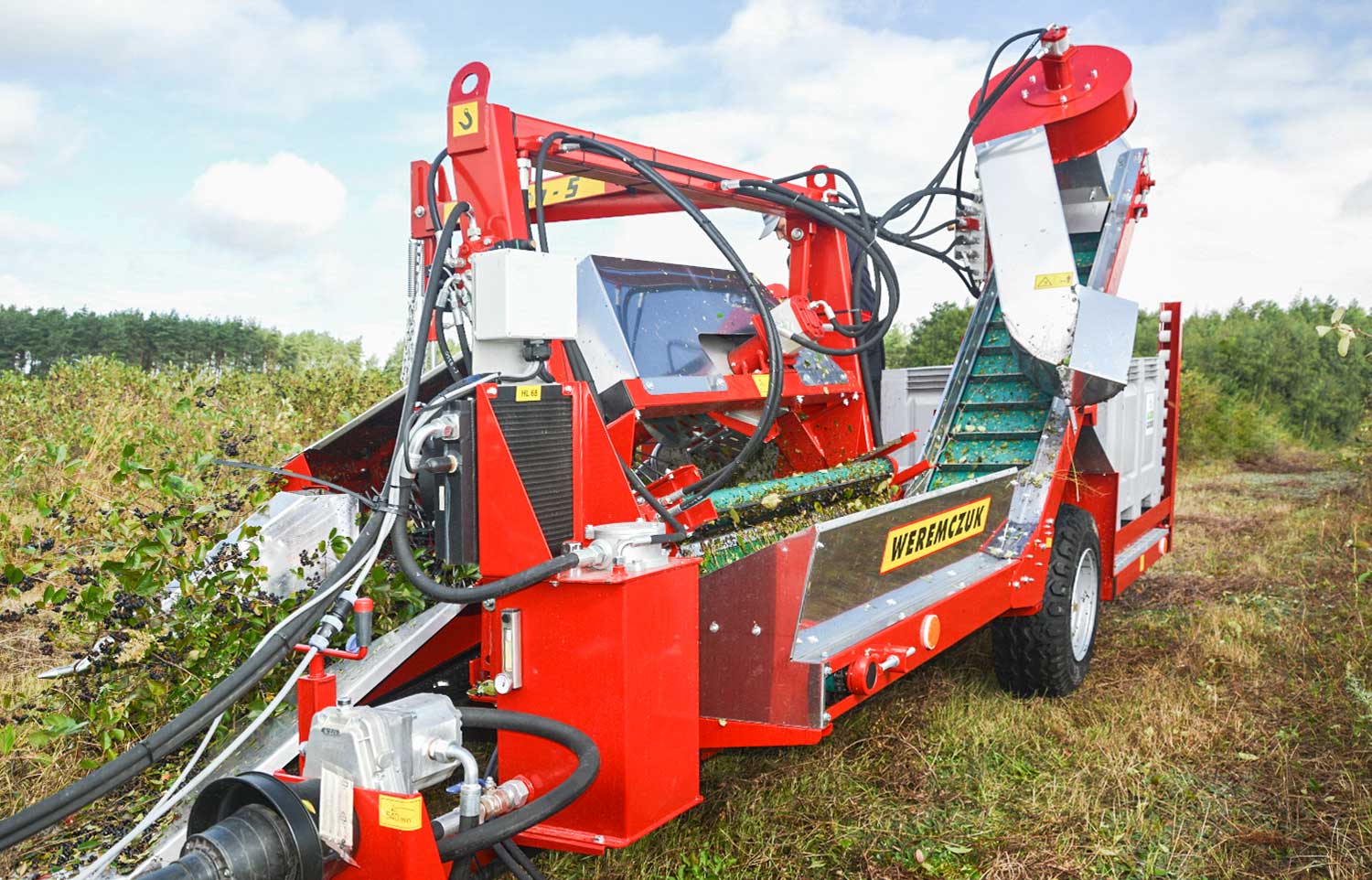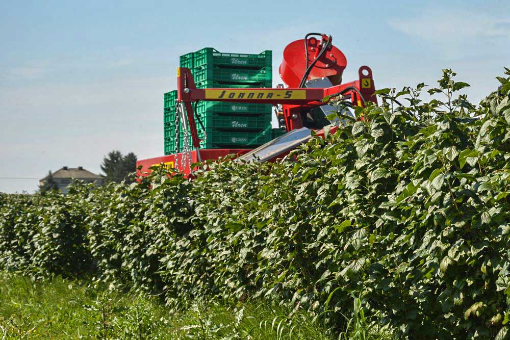 Speciális félsoros, traktorvontatású betakarítógép. Ribizli, berkenye, egres, fanyarka, mézbogyó, csipkebogyó és egyéb bogyós gyümölcsök betakarítására. Olyan bokroknál alkalmazható, amelyek magassága és szélessége nem haladja meg a 3 métert. Nagy teljesítményt, hatékony rázást és nagyon jó minőségű termék betakarítást biztosít a felhasználónak.