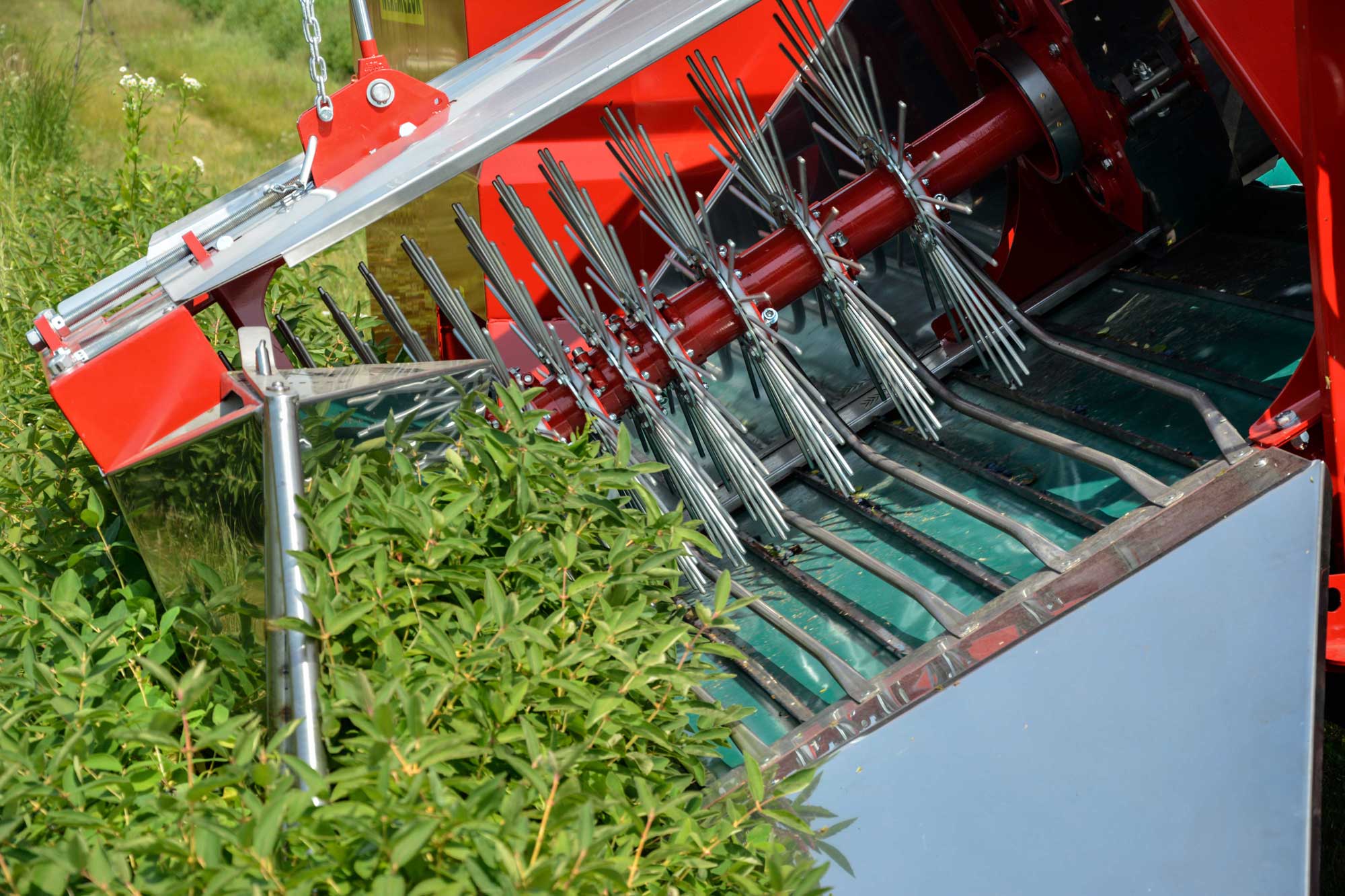 Magas minőségű termékbetakarítás, kíméletes a bogyókkal. Kényelmes munkavégzés. Számos további opcióval, a vevői igényeknek megfelelően. Az állítható rázófejének köszönhetően, pontos betakarítást biztosít. Tágas, jól elrendezett munkaplatformmal felszerelt. Hatékony bogyószedés alacsony bokrokról is. Független hidraulikarendszer gondoskodik a megfelelő működésről, mely termosztáttal ellátott olajhűtővel rendelkezik. Oldalsó fülek: